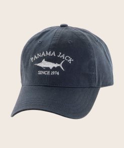 CLASSIC DESIGN: Crafted out of cotton, this Panama Jack baseball cap hat is designed with an embroidered marlin logo, eyelets (air vents), an antique t-slide closure and a 2 1/2″ bill for ultimate sun protection.