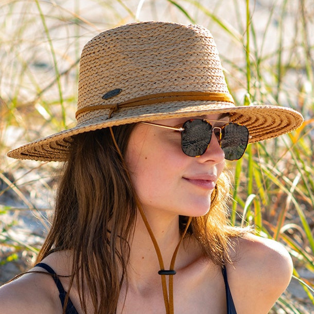 FUNCTIONALITY: With its teardrop pinched crown and adjustable chin cord, this ladies beach hat is conveniently designed to ensure maximum comfort while on the move.
